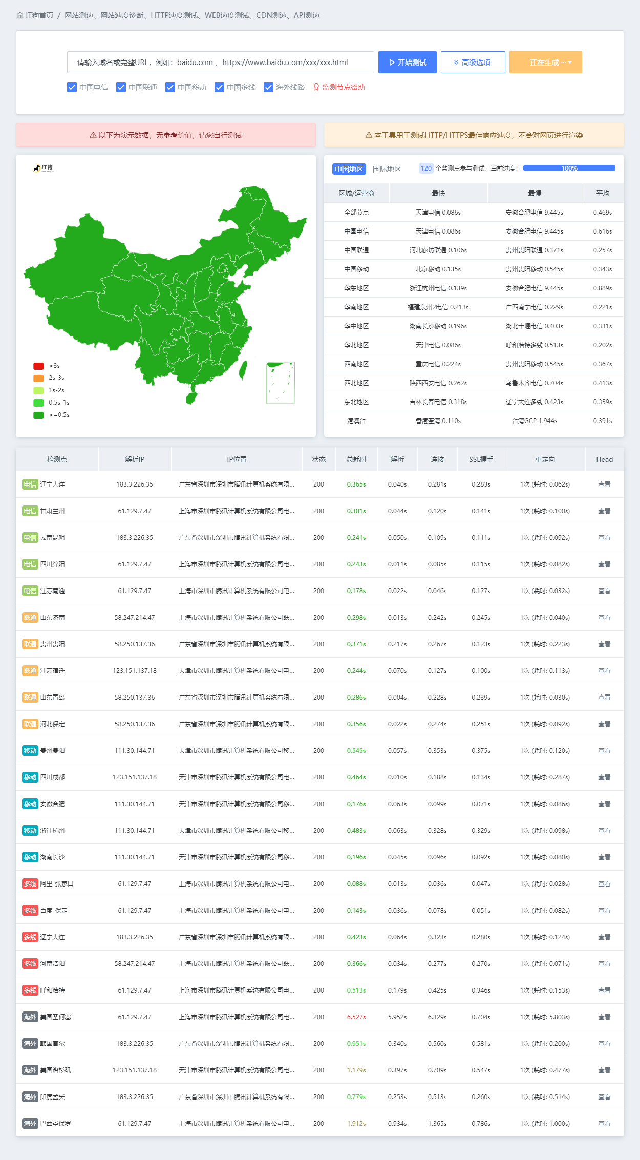 网站测速(HTTP测速、WEB测速、CDN测速、API测速)已上线