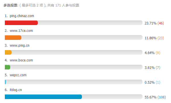 对于投票结果,很显然,说服力很有限,仅代表全球主机交流论坛的坛友,尽管这个论坛藏龙卧虎、大咖云集、上有工信部领导、下有阿里腾讯大佬,但也确实是还有很多用户并不知道有ITDOG这样一个实用的工具网站,所以这一切都将化作前进的动力,让ITDOG成为实至名归的No1.