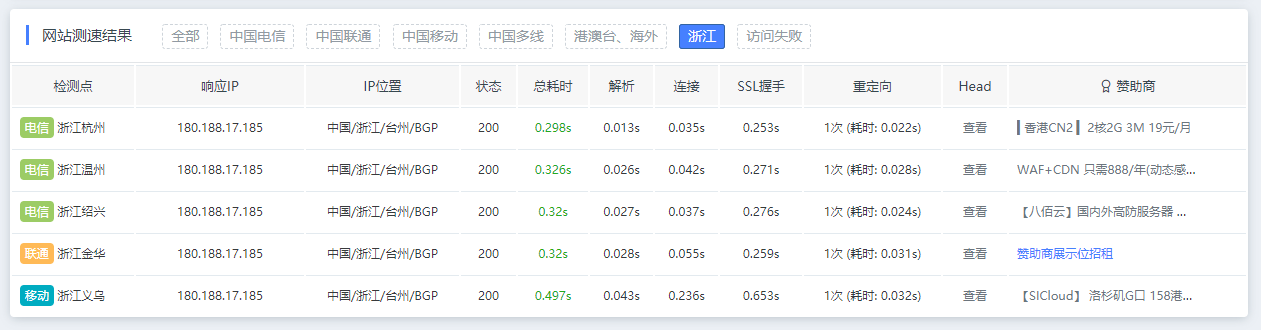 由于移动云(ecloud.10086.cn)内部维护的黑名单系统中,被拉黑的IP越来越多,逐渐失去网络监测的作用,现ITDOG已下架所有移动云的监测点,并用同地点移动线路节点替换,不会再出现个别IP的移动线路测试结果与其他平台移动线路测试结果不一的情况;另外,根据用户的反馈和建议,单次测试的结果地图中,鼠标放置于区块后将显示此区块所有的监测点记录,而不是像之前一样只显示一个记录,同时还可以点击地区区块,快速筛选出指定区块的测试结果;